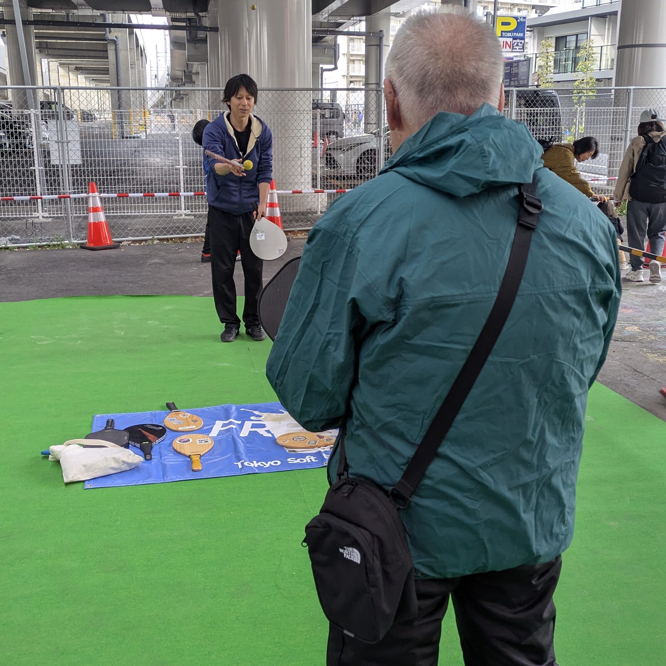 場所がいらない。 公園でも、高架下でも、広場でも、10メートル四方のスペースがあればラリーが始まります。ストリートがそのままコートになる。